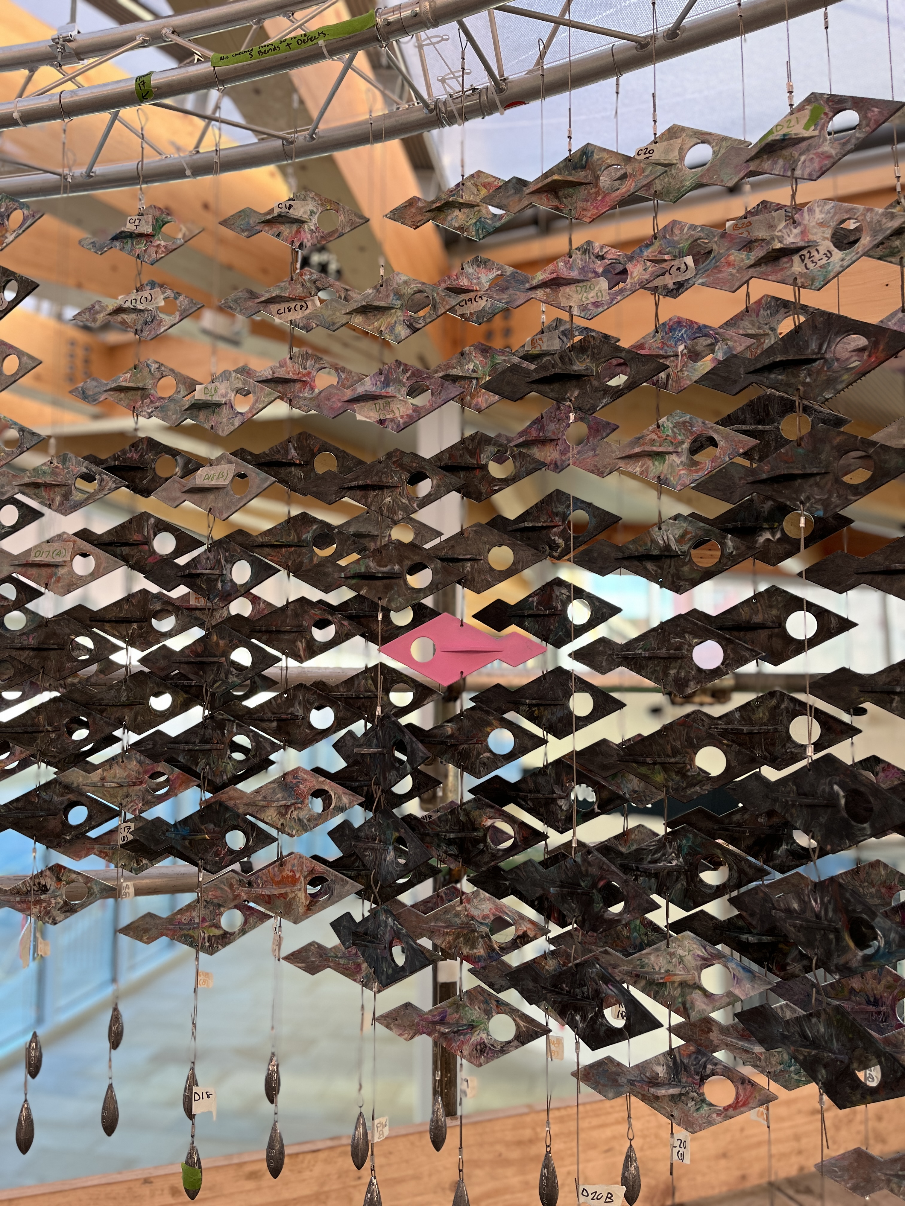 Net Zero principles and sustainability are central to the process. We created a suspended ceiling sculpture with over 2,000 small fish pressed from recycled plastic donated locally by, CJM Recycling and Impact Recycling.